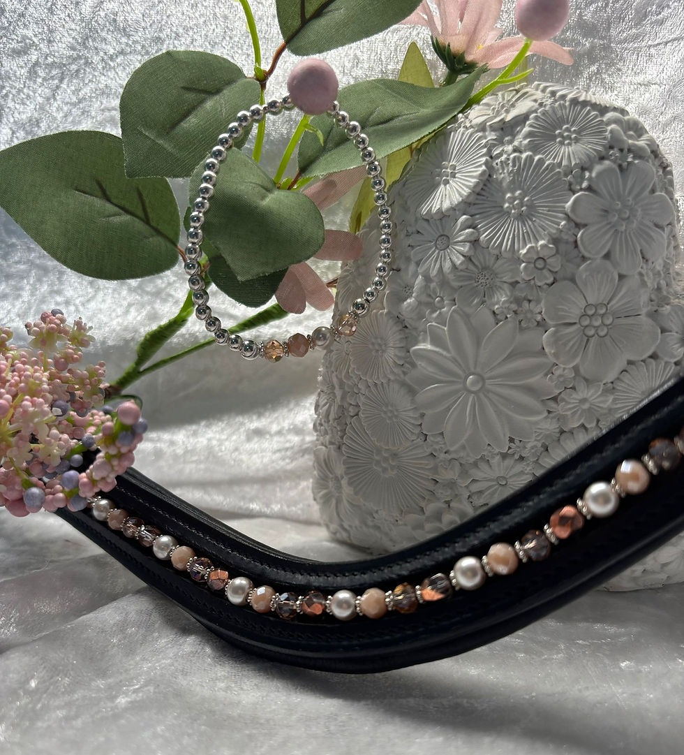 Channel Browband - Black - Full 16" - Light Rose / Black Diamond
